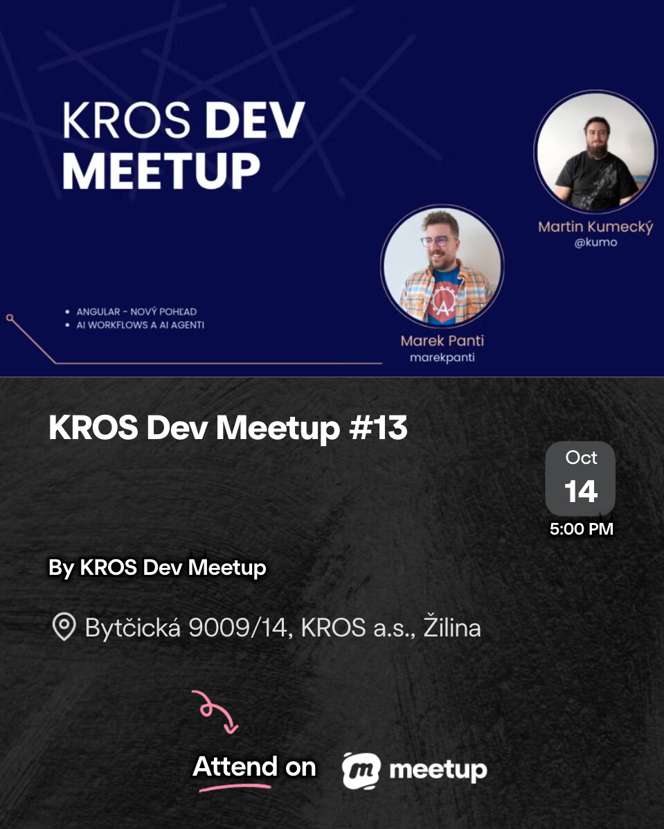 Viac info na KROS Dev Meetup #13, Tue, Oct 14, 2025, 5:00 PM | Meetup